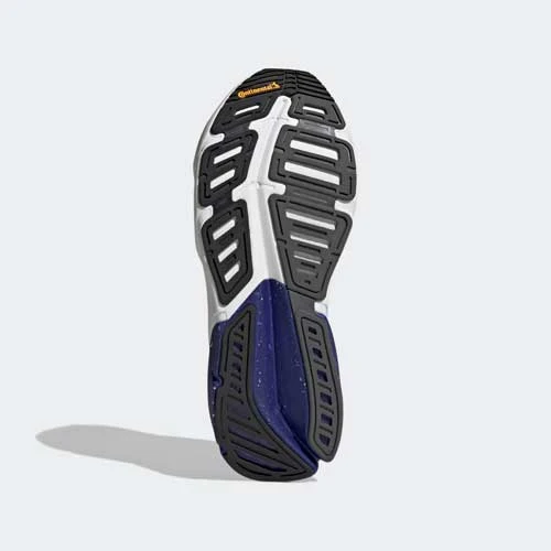 The distance running shoe inspired by the idea of perpetual motion and tested over 4,500 km. Adistar combines a soft, lightweight REPETITOR foam platform with REPETITOR +, a firmer foam, to create a dual density midsole. The firmer 15% recycled EVA in the heel protects and helps stabilize any heel strike. Forward propulsion is enhanced by the rocker geometry as well as an overall 6mm drop heel to toe. Strike soft and push forward with a shoe designed to go the distance.