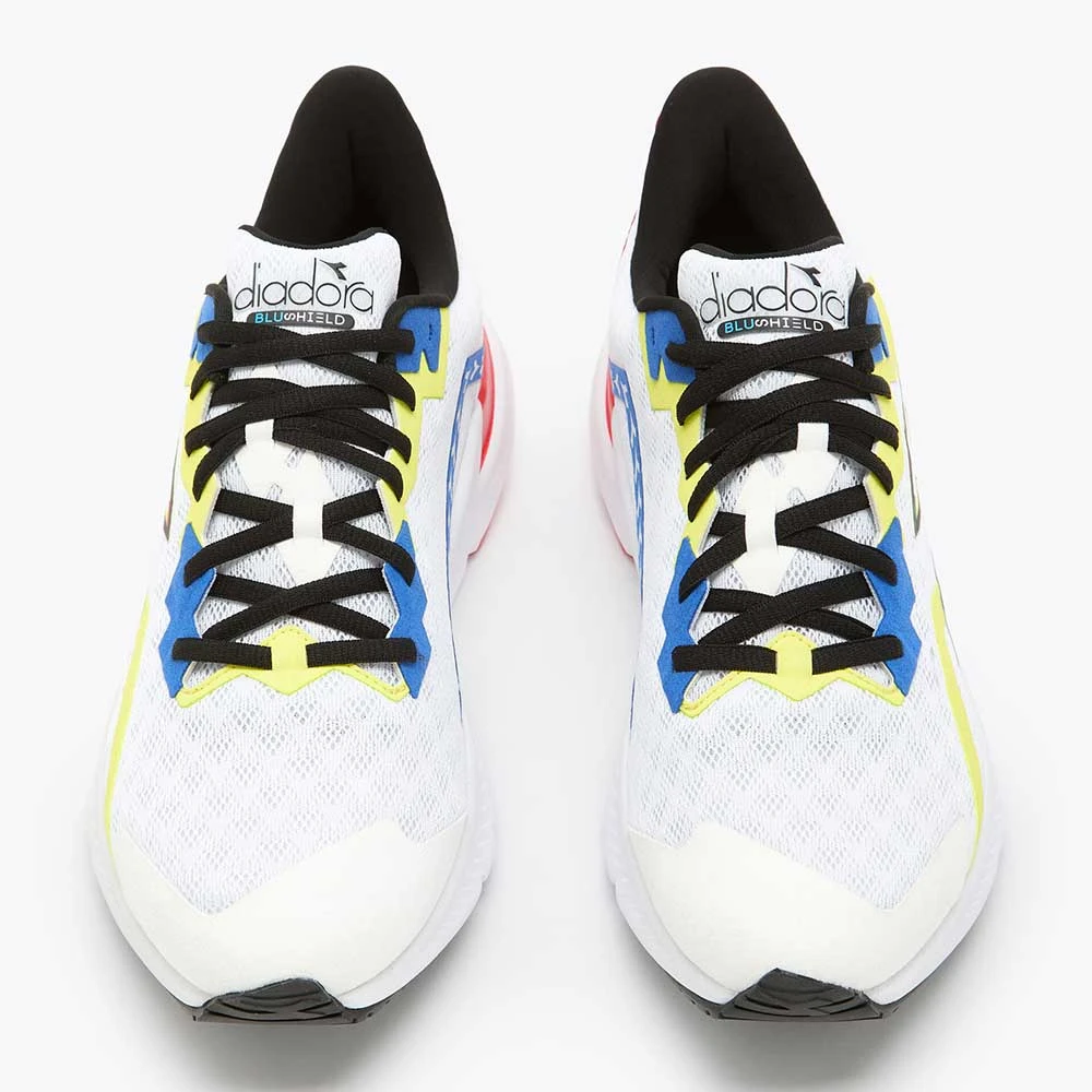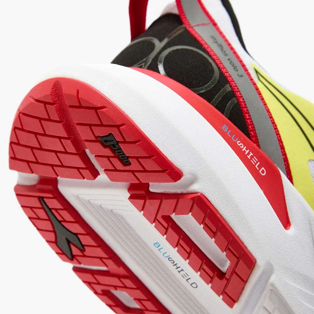 Diadora Men’s Mythos Blushield Volo 3 Running Shoe- White/Black/Yellow Fluo – Regular (D)