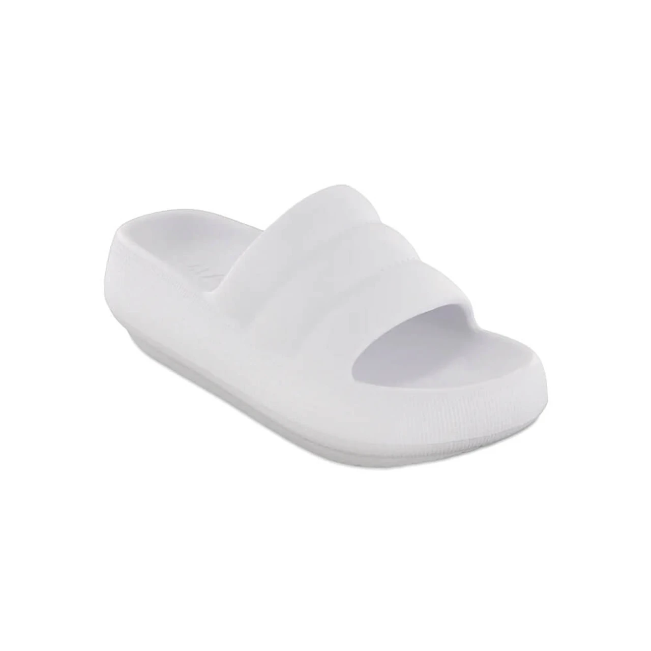 This is the shoe for all your beach and poolside adventures. This sandal is designed with a thick rubber sole and puffer strap across the foot. The soft edges and a curved form modernize this water-ready slide sandal with a thick platform.
