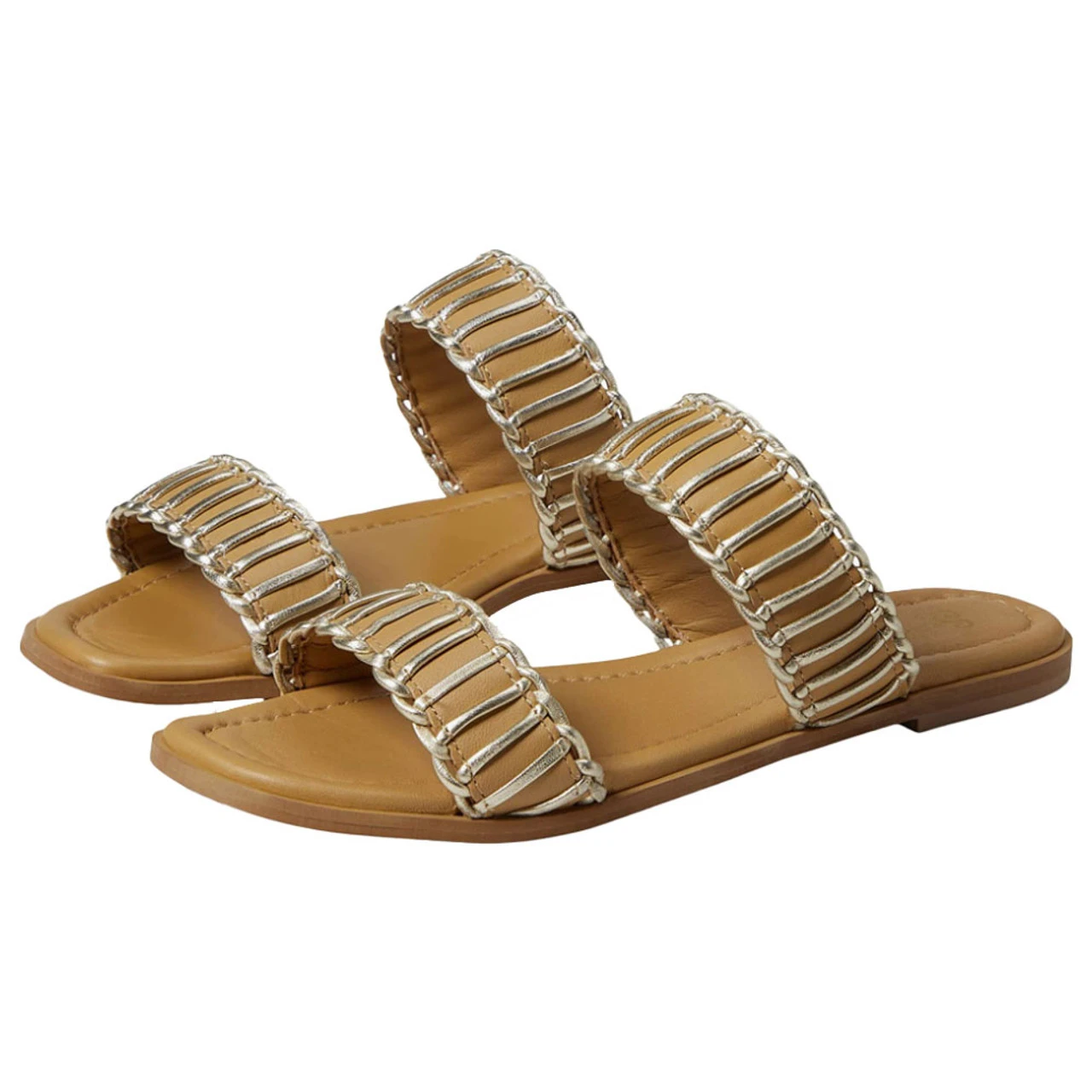 Slip on sandal perfect for the beach with it’s shiny straps and easy on and off design.